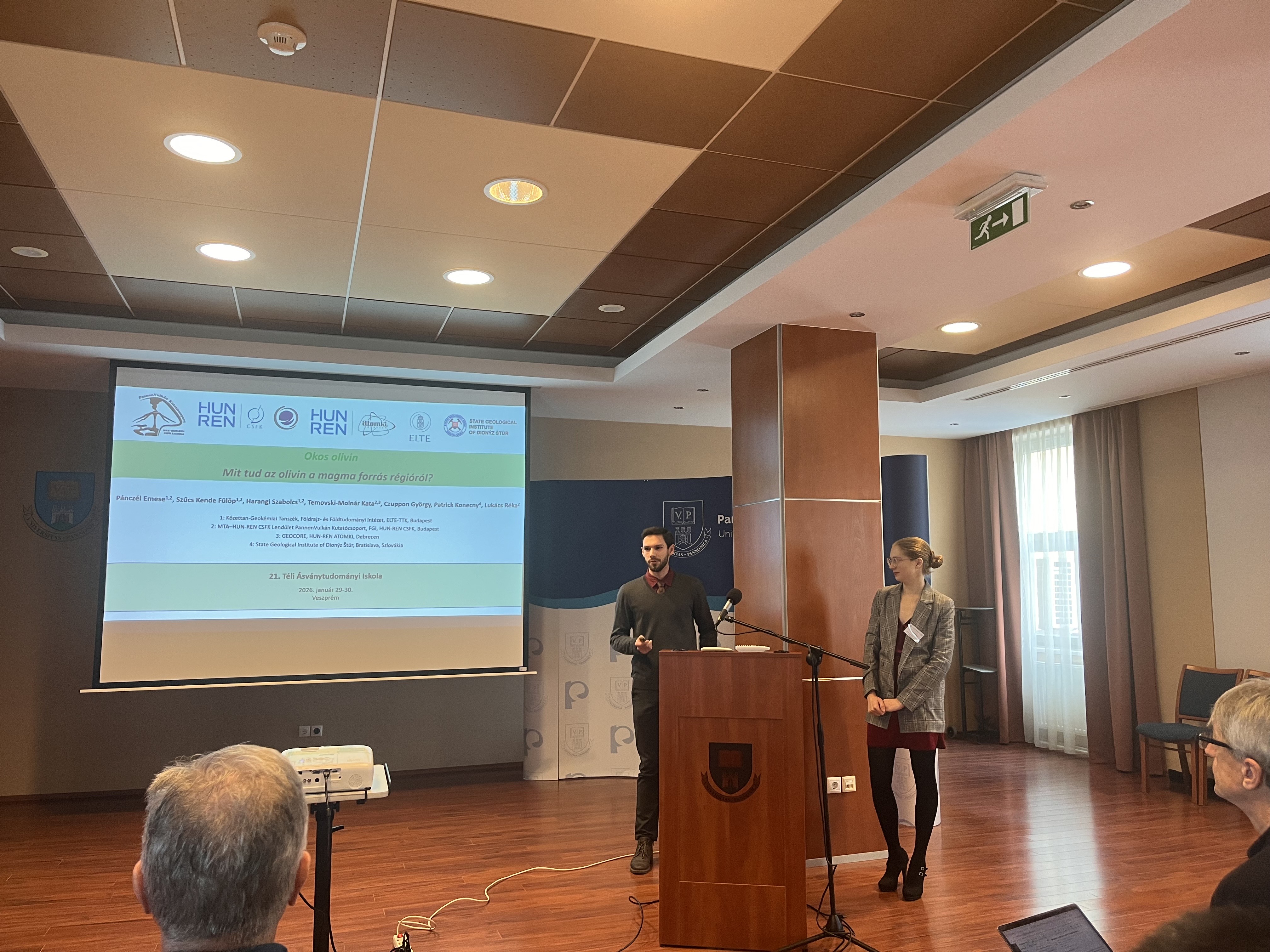Hajdu Krisztina „Robban vagy ömlik: mit árul el a vulkánok belsejéről az apatit?” című előadásában az apatit ásvány szerepét mutatta be a vulkáni működés és a kitörési mechanizmusok megértésében. Pánczél Emese és Szűcs Kende Fülöp közös előadása „Okos olivin – Mit tud az olivin és olvadékzárványai a magma forrásrégióról?” címmel az olivin és az általa megőrzött információk jelentőségére világított rá a magmás és geodinamikai folyamatok kutatásában.